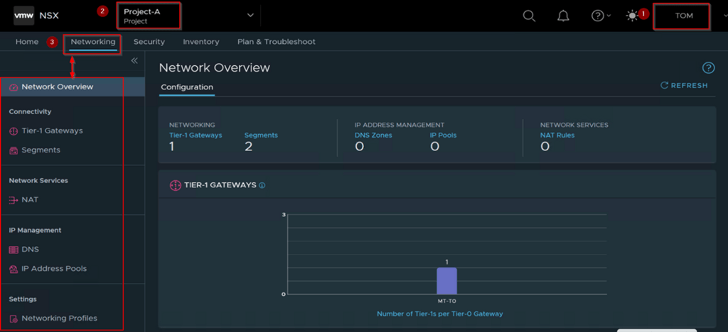 Always ensure that when working on a project, the networking features are kept separate from other projects. This approach makes everything organized and easy to manage. I connect Tier-1 gateways and segments to the tier-0 gateways specifically assigned to each project. Proper connection maintenance is crucial to prevent any issues in the future. With the latest version 4.1.0, any segments created within a project automatically become part of the default transport zone assigned to that project, making the process smoother and more efficient.