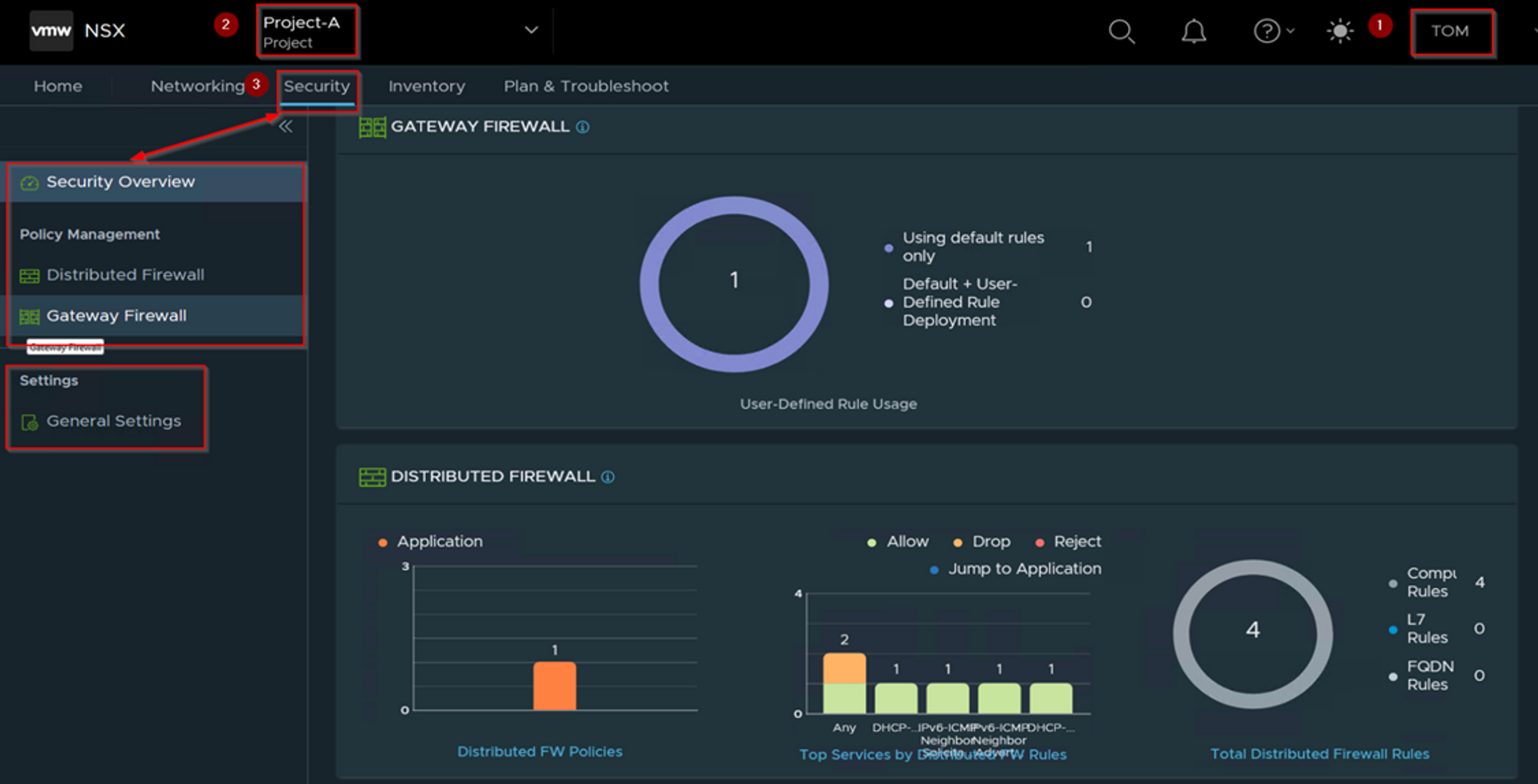Users have the power to create their own distributed firewall policies, ensuring the seamless traffic flow between the east and west sides of the project. These policies and rules are solely applicable within the project, leaving no impact on any workloads outside of it. This feature promotes unparalleled flexibility and customization in managing network security within a project, all while maintaining the safety and security of other areas.