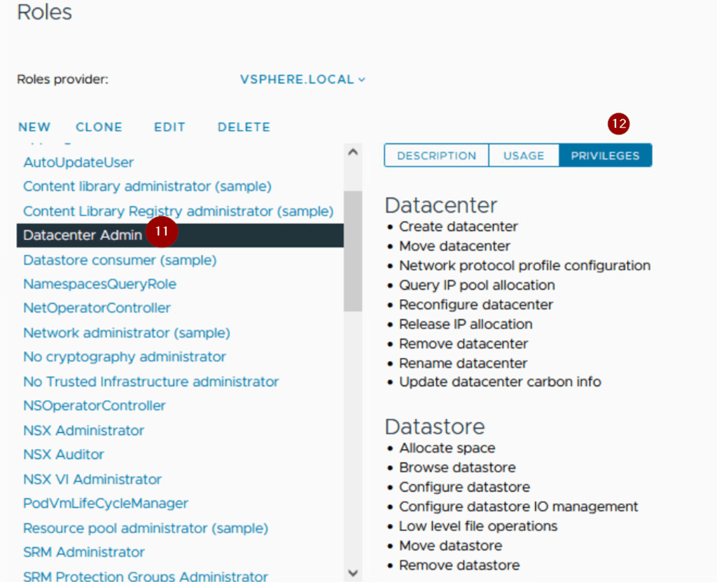 - Assigning vCenter Administrator Role and Datastore Privileges