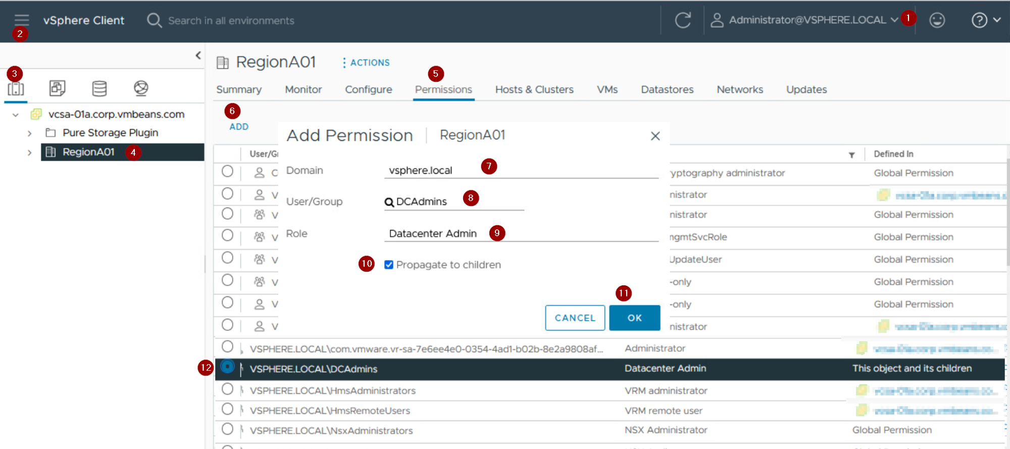 - Assigning vCenter Administrator Role and Datastore Privileges