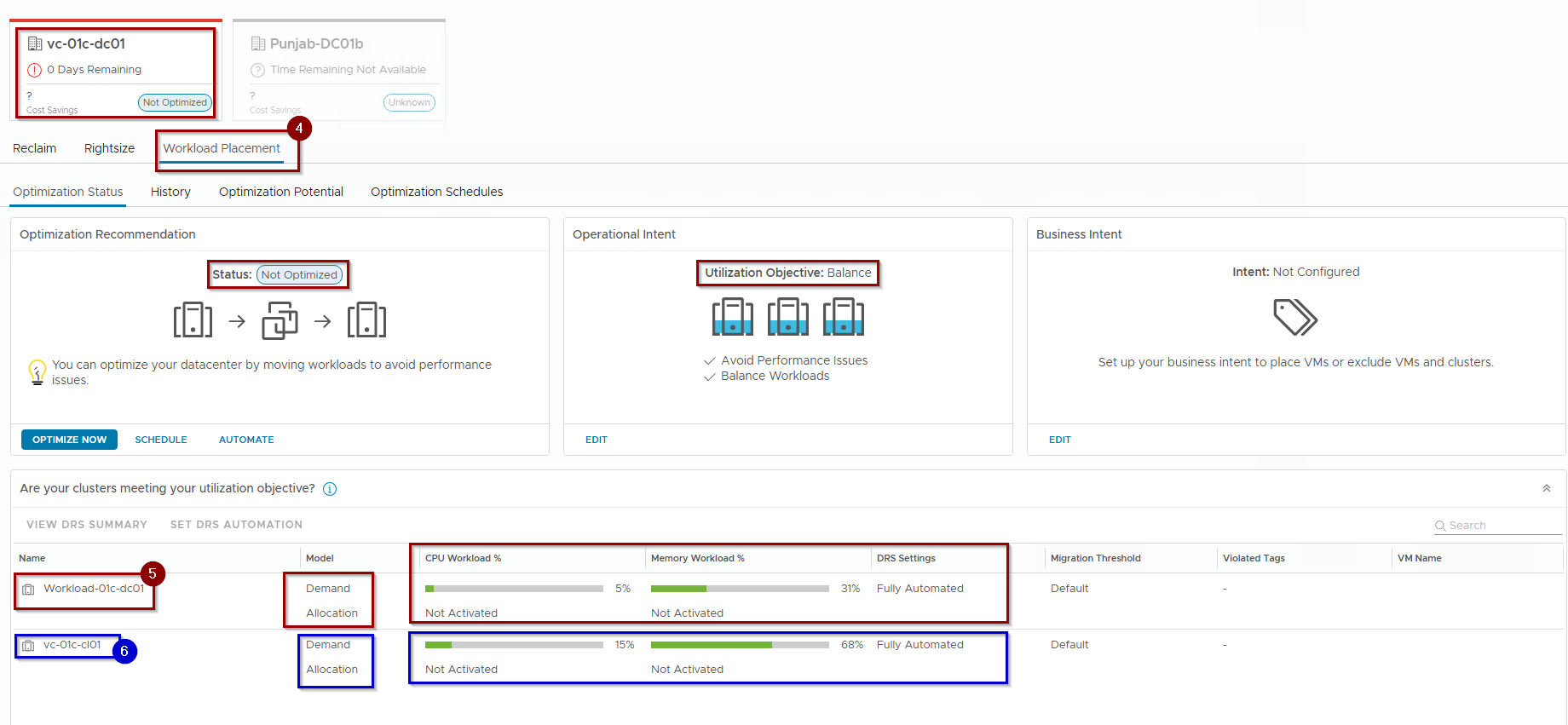 - Verify the Demand Model is enabled for capacity calculations, as Workload Placement logic is primarily driven by current resource requirements rather than static allocations.