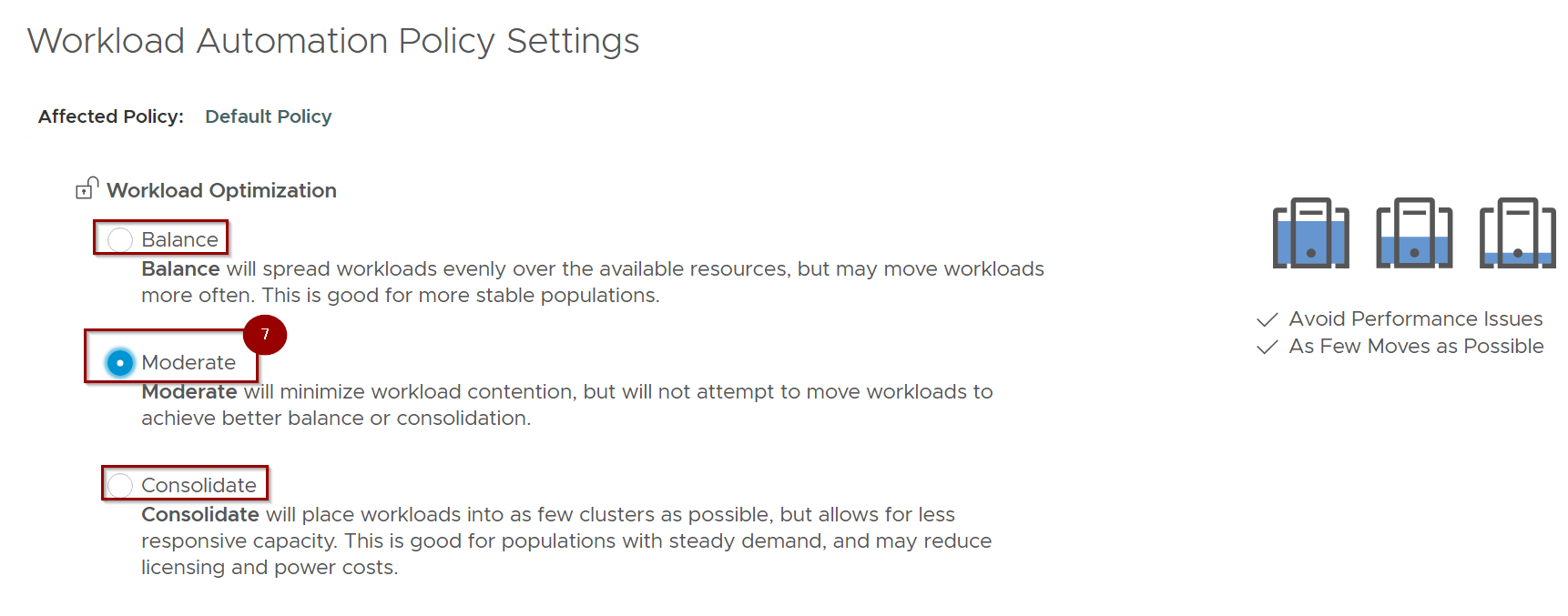 - Strategic Outcome: By maximizing VM density, this mode identifies underutilized physical hardware that can be powered off or repurposed to reduce licensing and power costs.