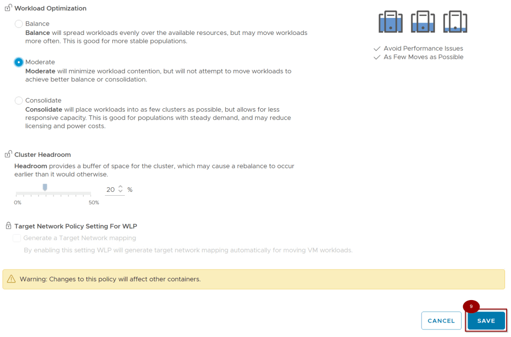 - Strategic Outcome: This minimizes “vMotion noise” and ensures infrastructure stability, moving workloads only when absolutely necessary to maintain the “green state” defined in the policy.