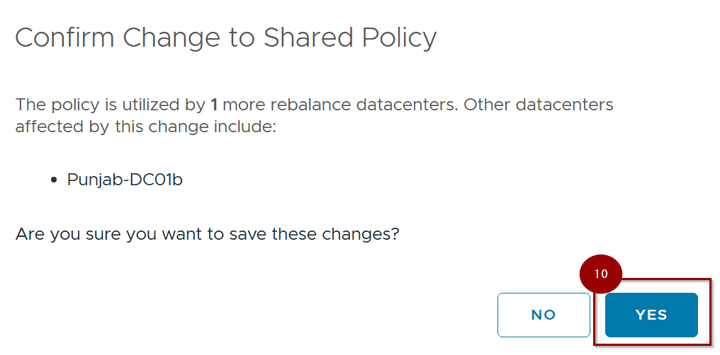 Note:- If the current policy applies across multiple locations. If utilized in another datacenter, clicking to apply changes will affect that datacenter as well.