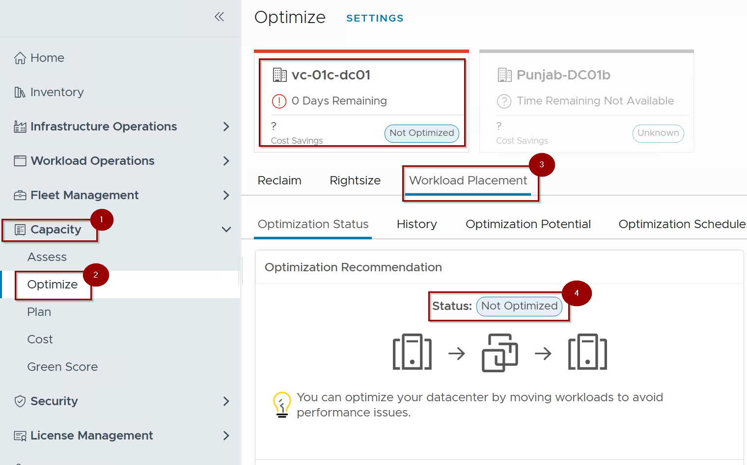 - Click on Workload Placement under the selected datacenter.