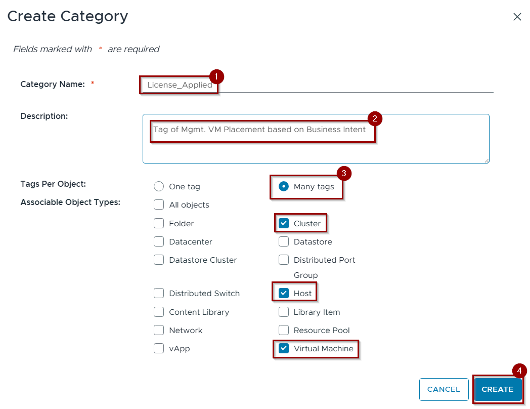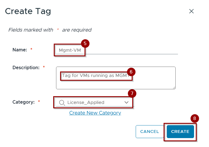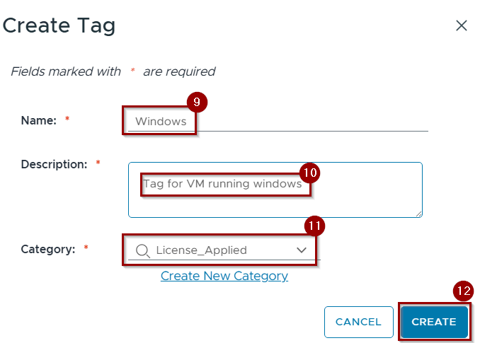 - In vCenter, create a Tag Category.