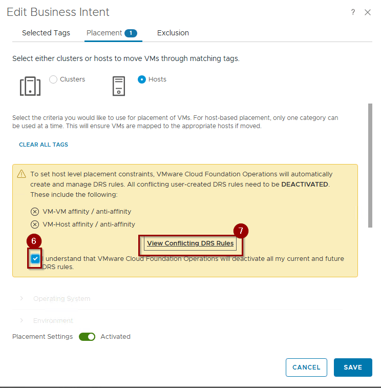 Note:-In the host-level placement, VCF Operations will automatically generate the required vSphere DRS Affinity Rules.Confirm the system’s request to disable any conflicting manual DRS rules to ensure the automated policy remains the “Single Source of Truth”.