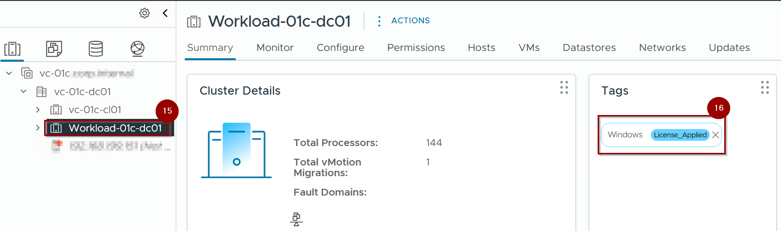 15. Select the Cluster (Workload-01c-dc01).