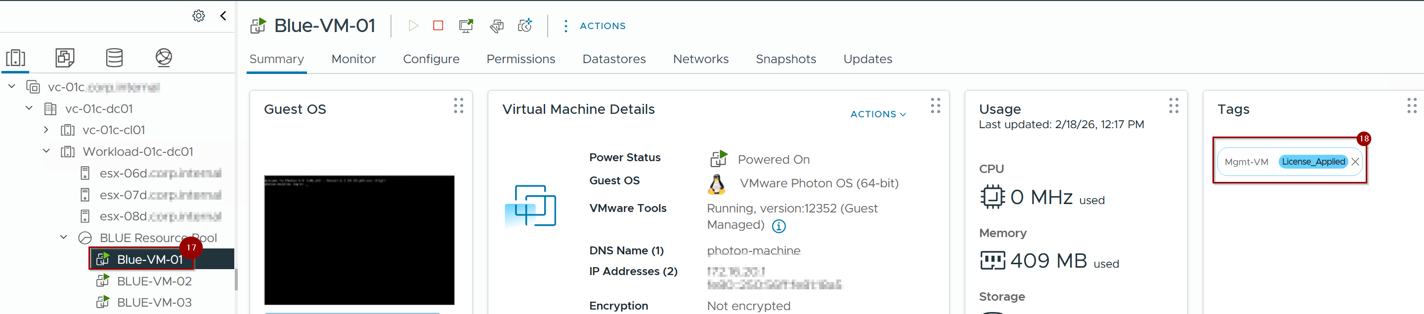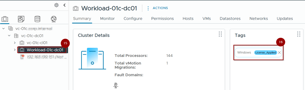 14.We are using the Mgmt_VM tag for cluster vc-01c-cl01.