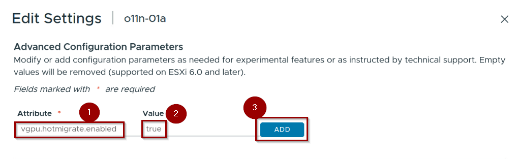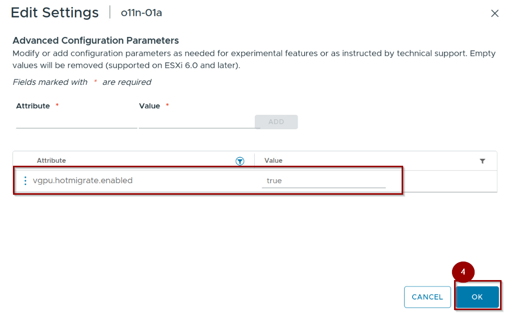 Step1: – Under Attribute “vgpu.hotmigrate.enabled"
